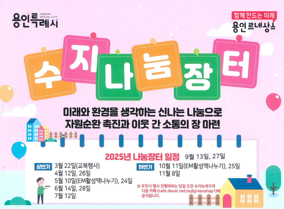 2025년 수지나눔장터 일정은 상반기 일정과 하반기 일정으로 나뉘는데 참고하시면 되세요.
